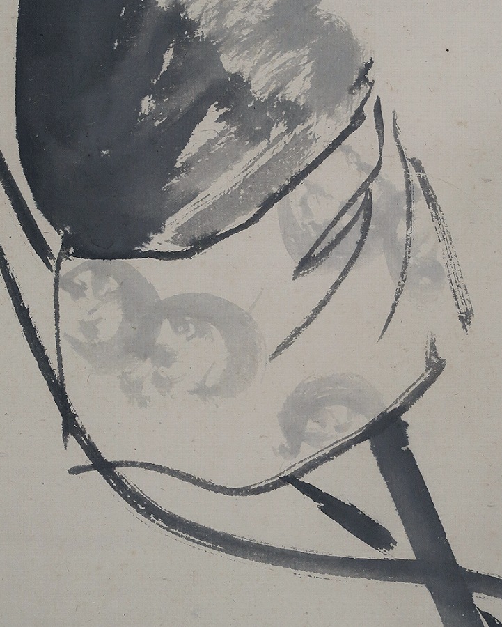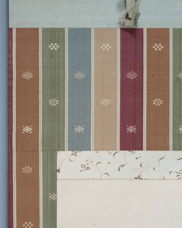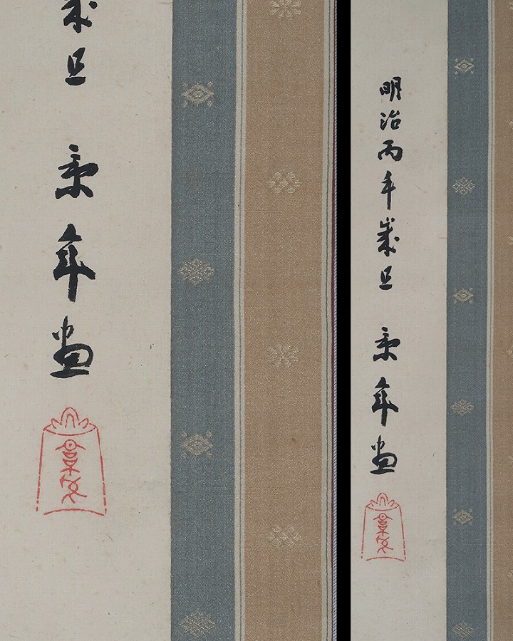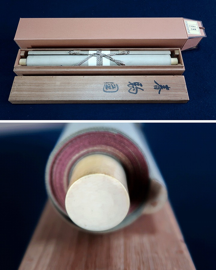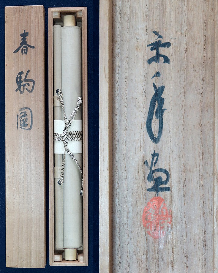 作品全体に経年による淡いよごれ、表装に軽い波うちがありますが気にならずお掛け頂ける状態です。