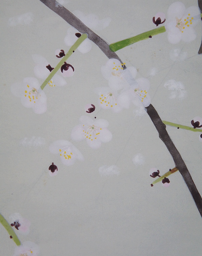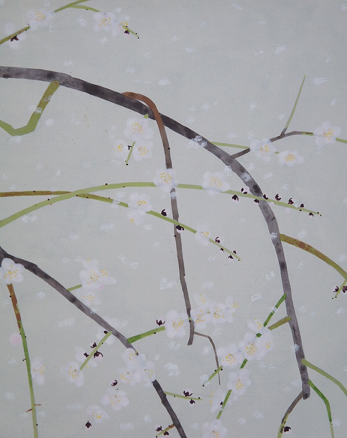 舞い散る雪のなか春を告げる梅が洒落た作品です。お楽しみ下さい。
