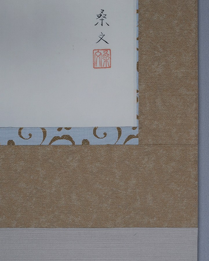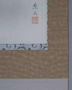 天地に淡いよごれがあったため表装中廻し・風帯は当時のままで天地替えをおこなっています。
