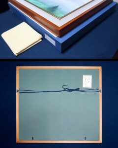 ■状態:共シール 布タトウ箱 木製額 黄袋 アクリル入り