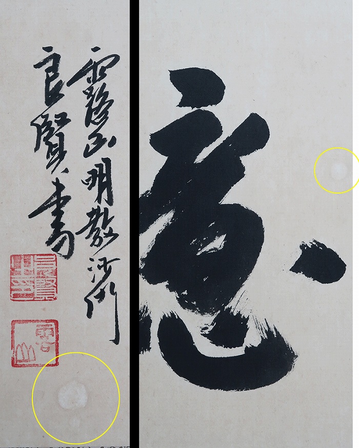作品に2カ所によごれと、額の角が少しひらいている箇所がありますので画像をご参照下さい。