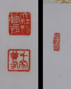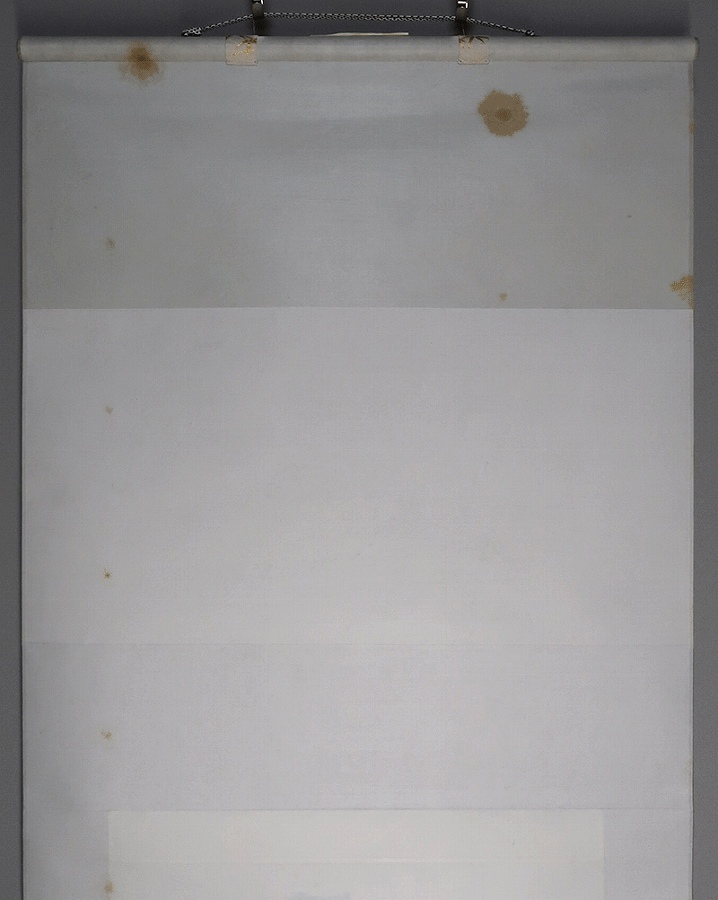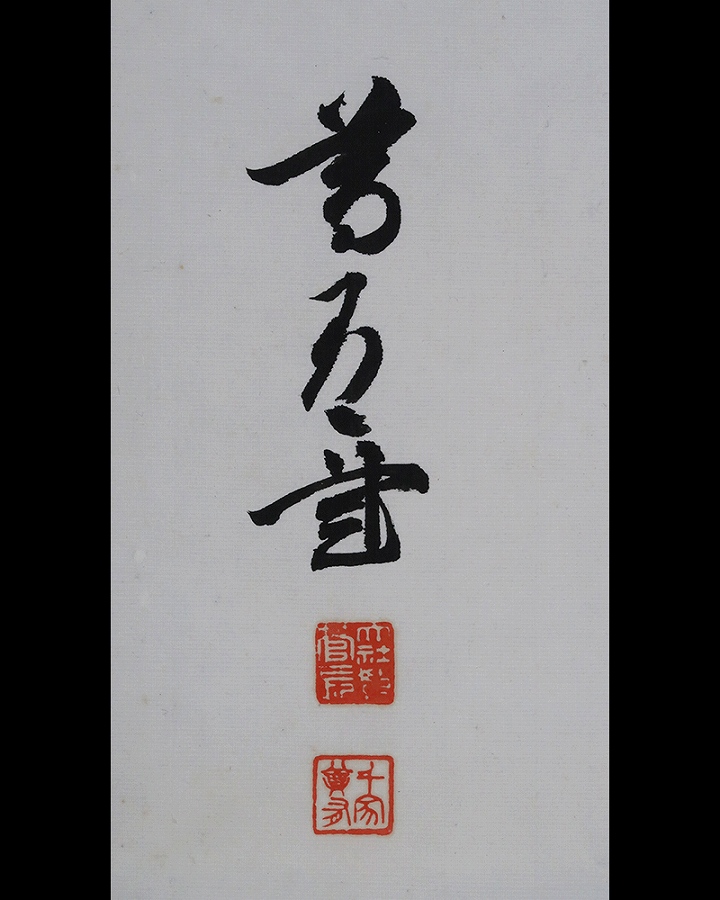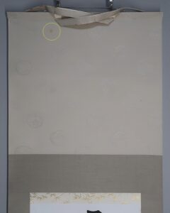 作品にごくわずかなよごれと表装上部(天)によごれ、表装裏に強いよごれがあります。