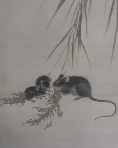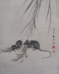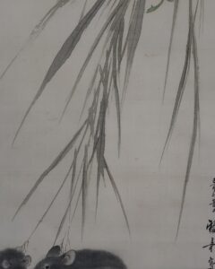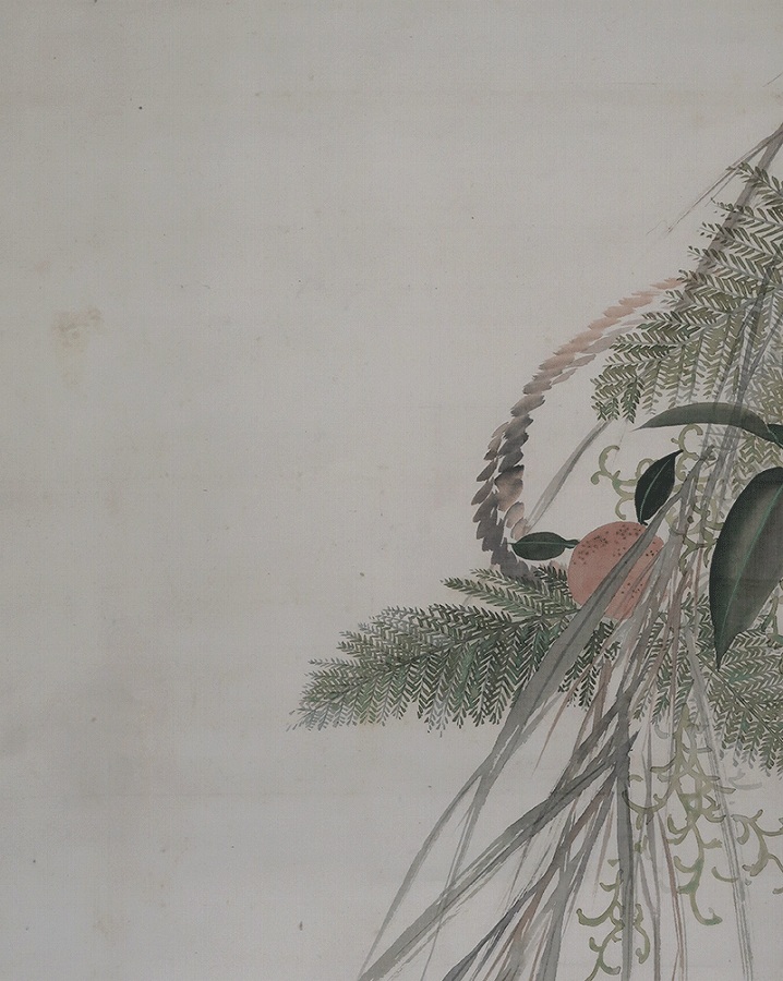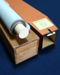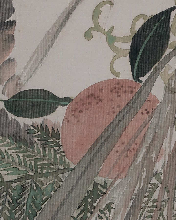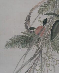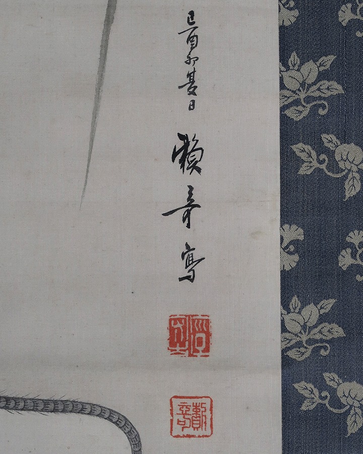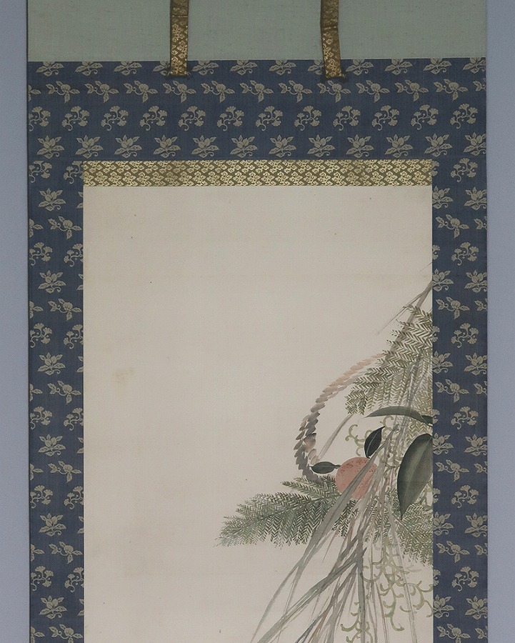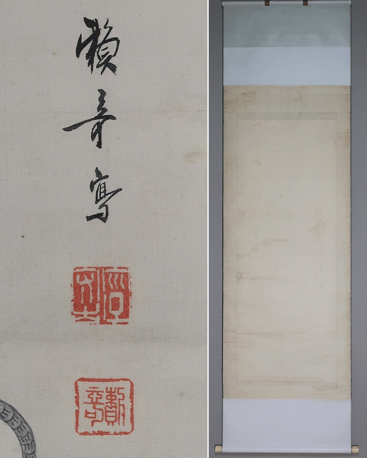作品・表装中廻し全体に経年によるよごれがあり、軽い波うちがありますがお掛け頂ける状態です。