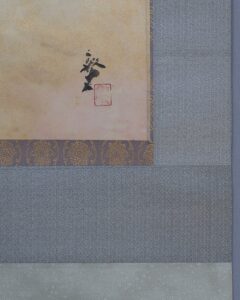 鑑賞時はわかりにくいですが作品に点状のよごれ、表装裏の上部に強めのよごれがありますので画像ご参照下さい。
