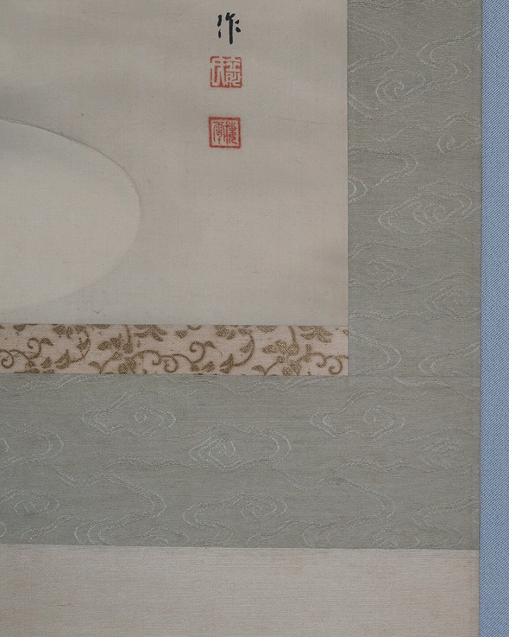 作品に経年よごれ、表装にヤケがあり色抜けしています。