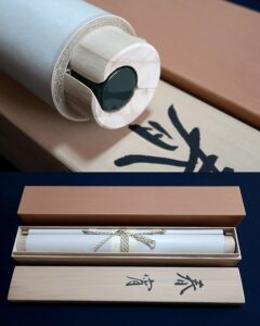 ■状態: 共箱 太巻き 軸先・木製 塗