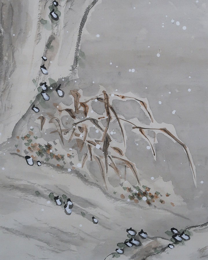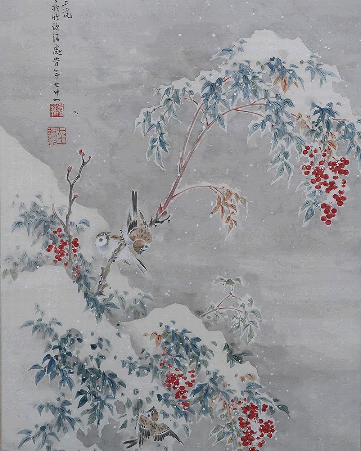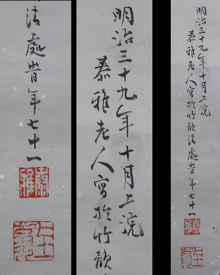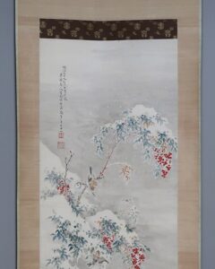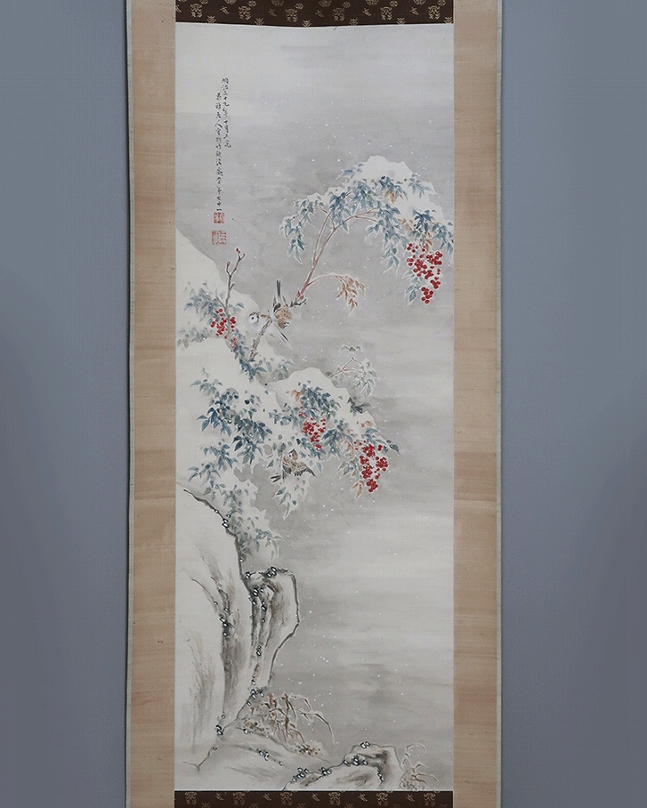 作品・表装に経年によるよごれ、表装に若干の反りがありますがお掛け頂ける状態です。