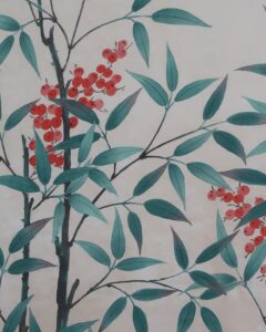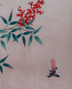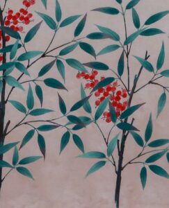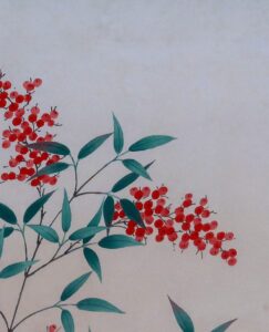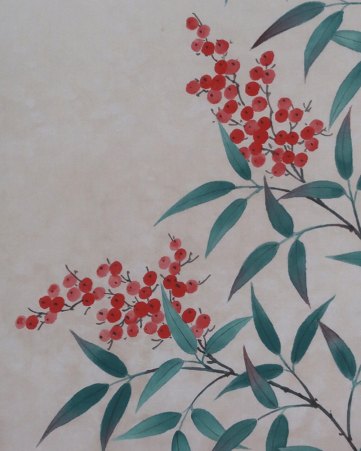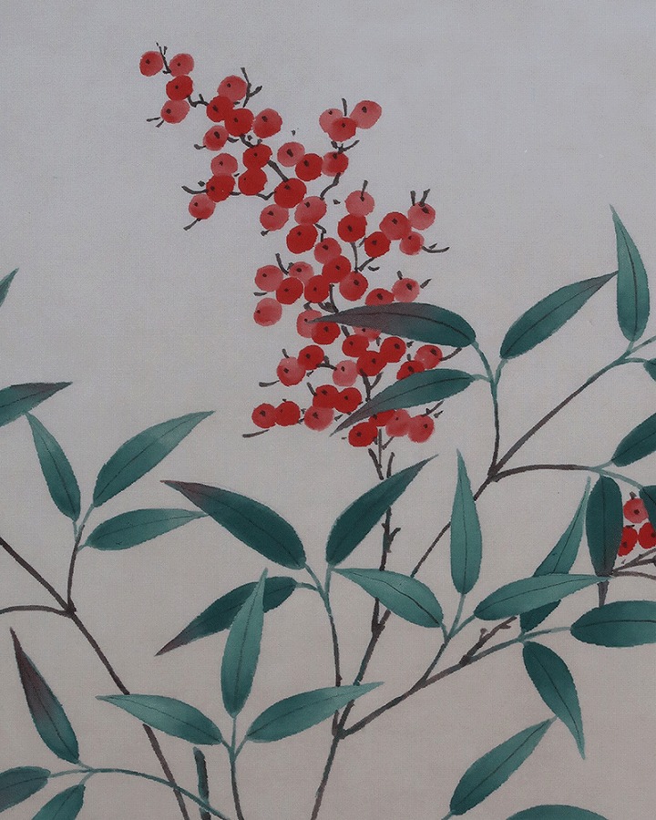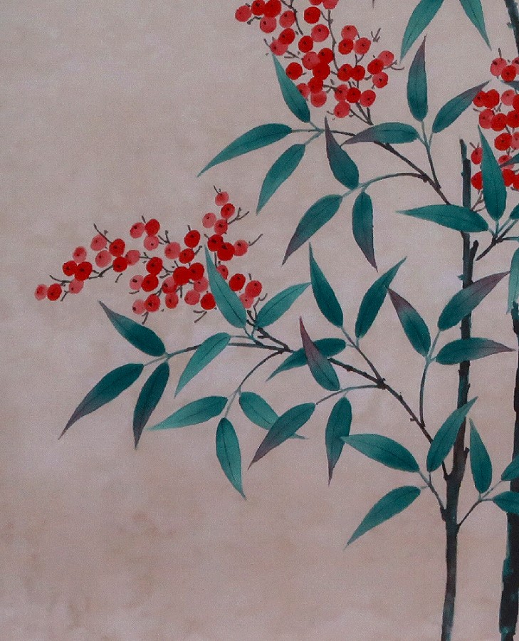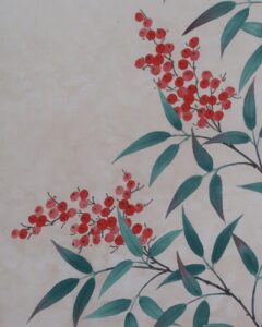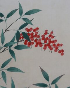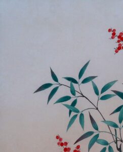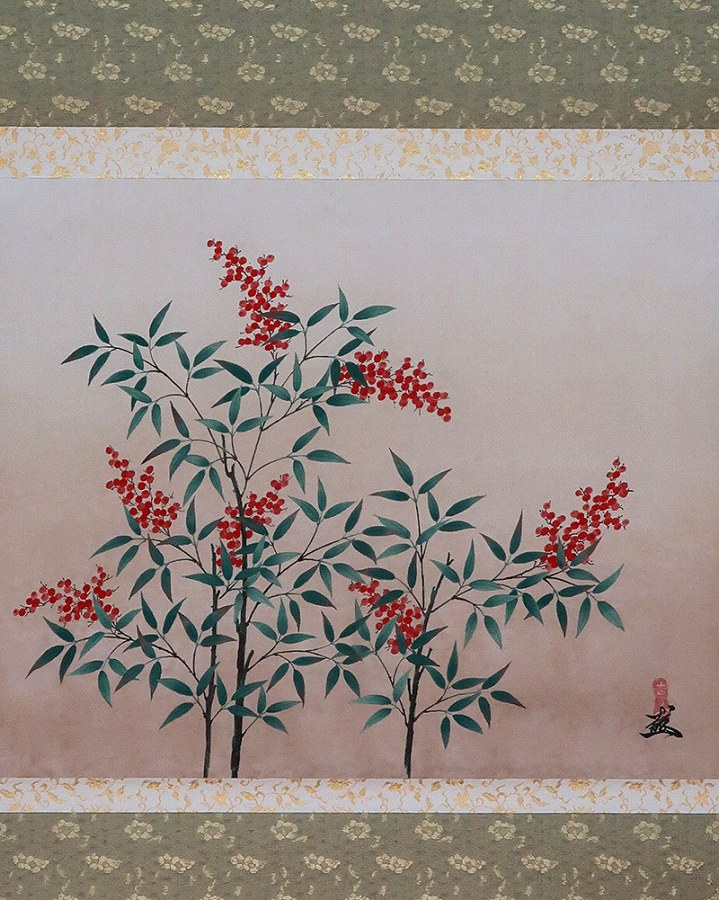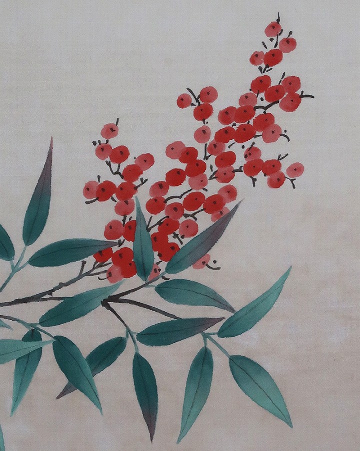 南天~「難転」難を転じて福となす~に通じることから縁起のよい植物。12月下旬から新春の床の間に彩りお楽しみ頂けます。