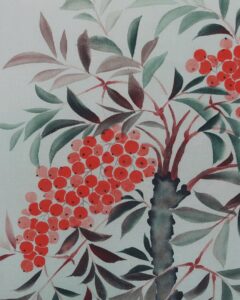 南天~「難転」難を転じて福となす~に通じることから縁起のよい植物。12月下旬から新春の床の間に彩りお楽しみ頂けます。