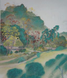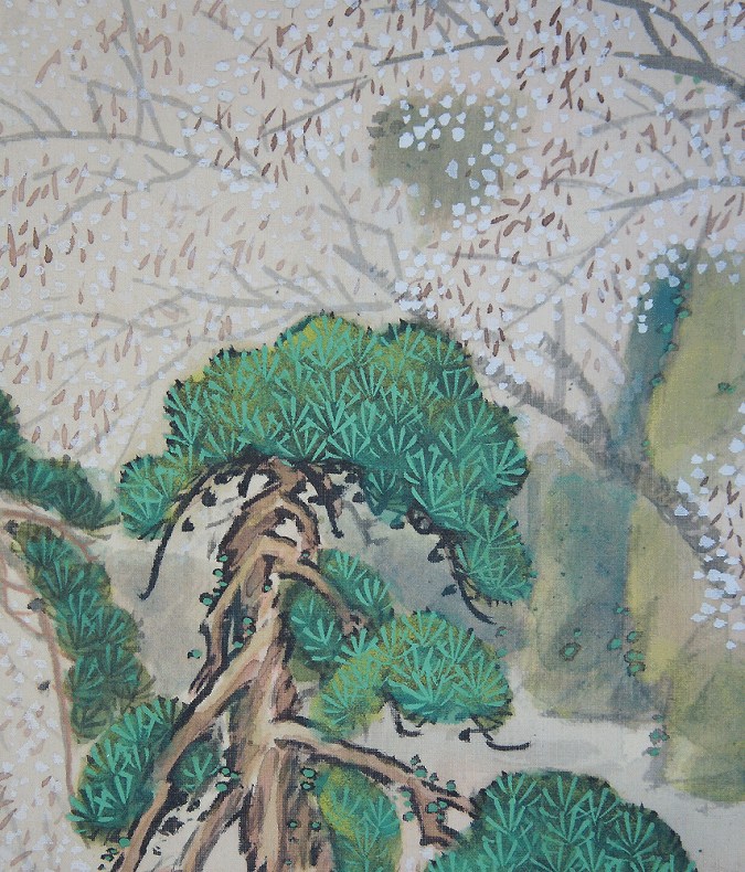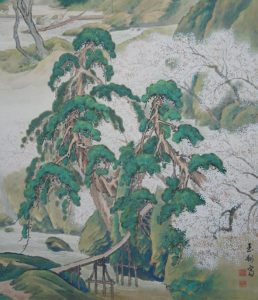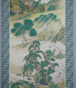 一幅の中に春夏秋冬が描かれている作品です。年中掛けとしてお楽しみ下さい。