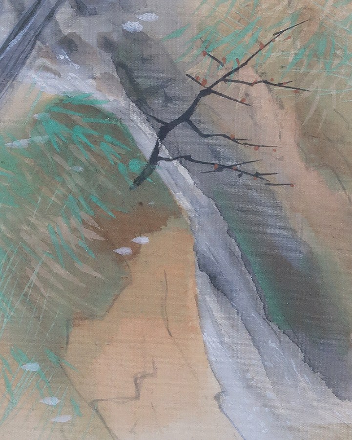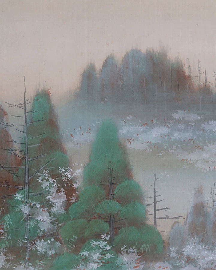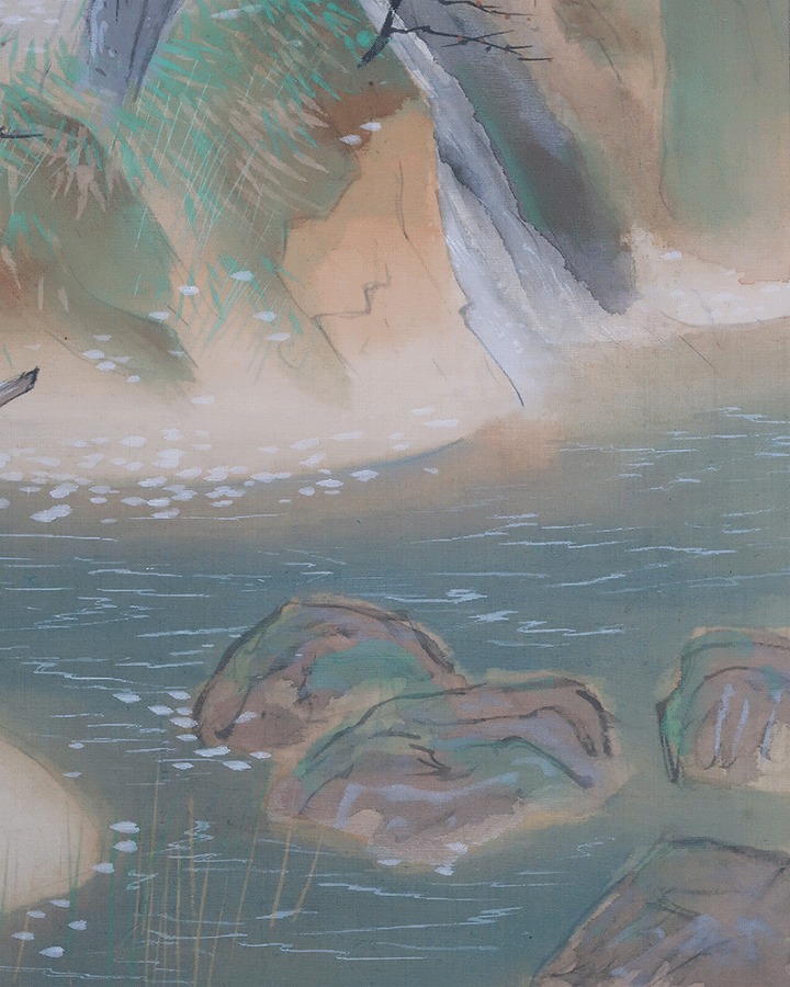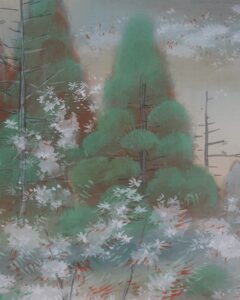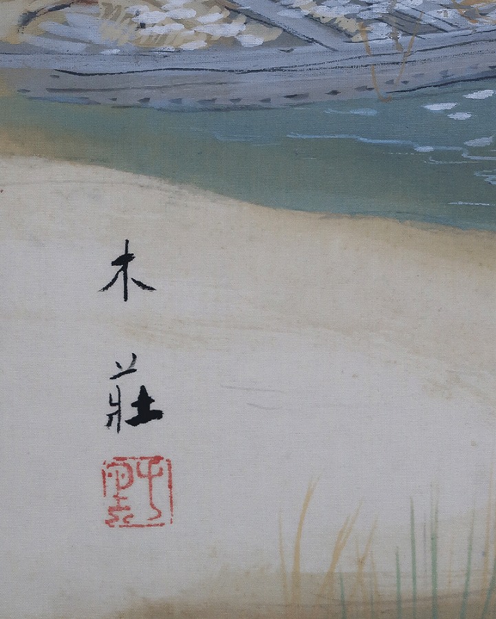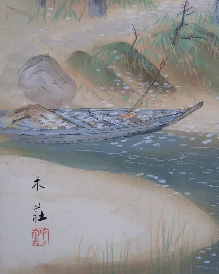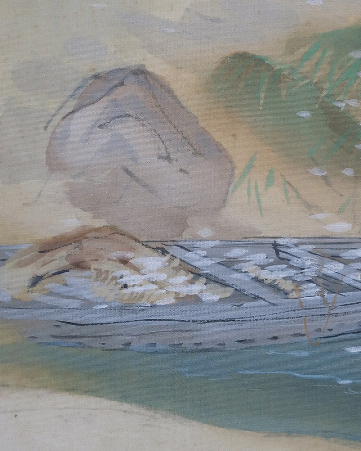 作品上部に経年よごれがありますが、鑑賞時気にならない程度です。