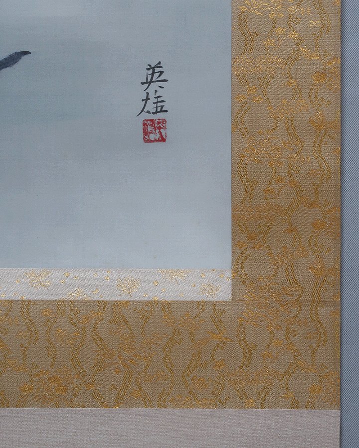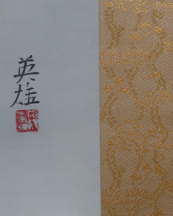 天地に淡いよごれがあったため表装中廻し・風帯は当時のままで天地替えをおこなっています。