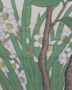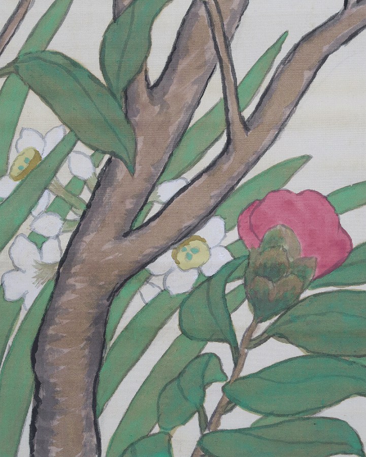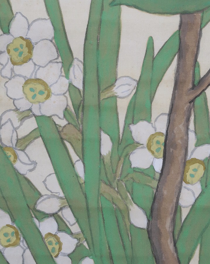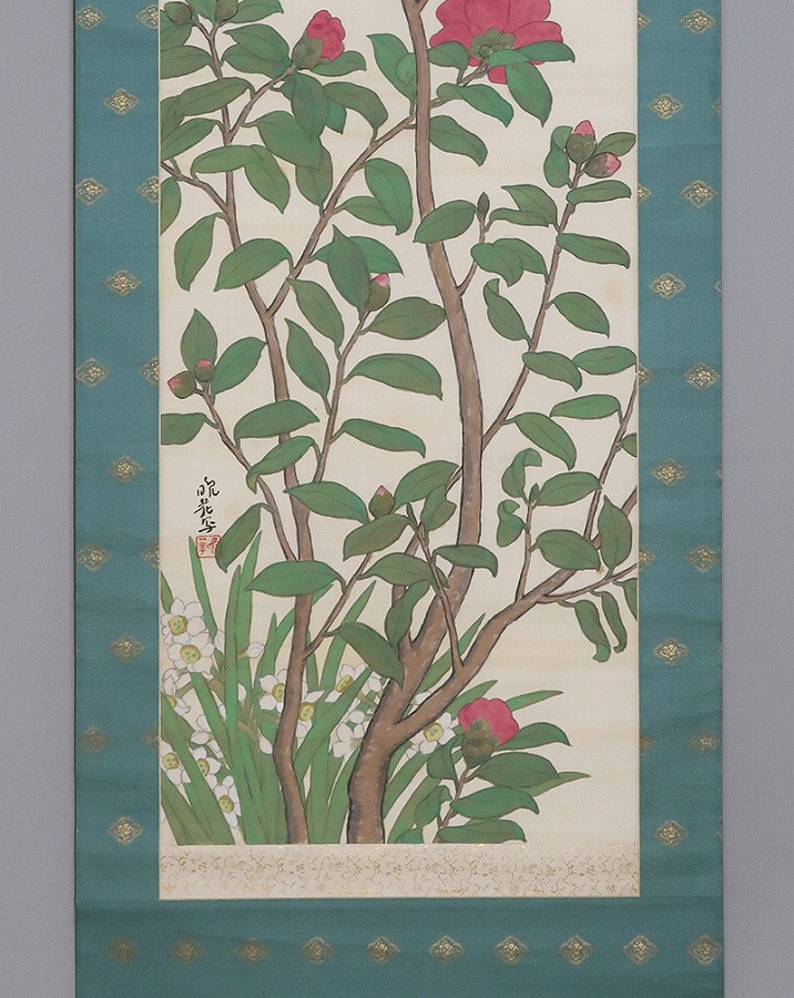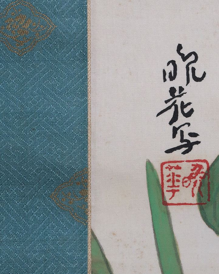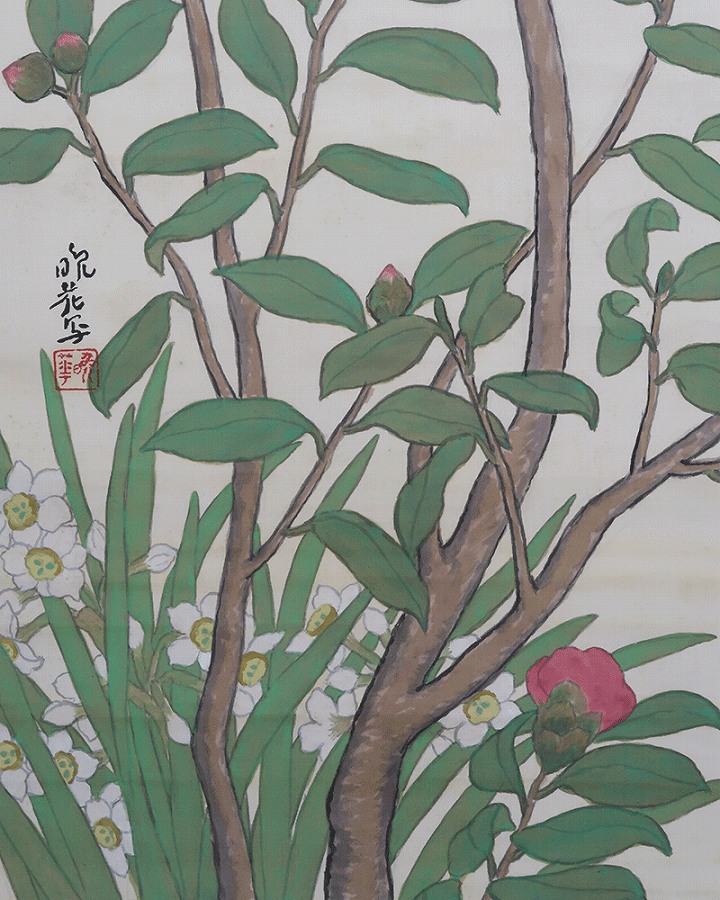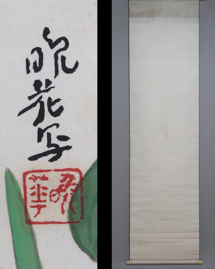 作品全体に経年による淡いよごれ、表装に軽い波うちがありますが鑑賞時は気にならずお掛け頂ける状態です。