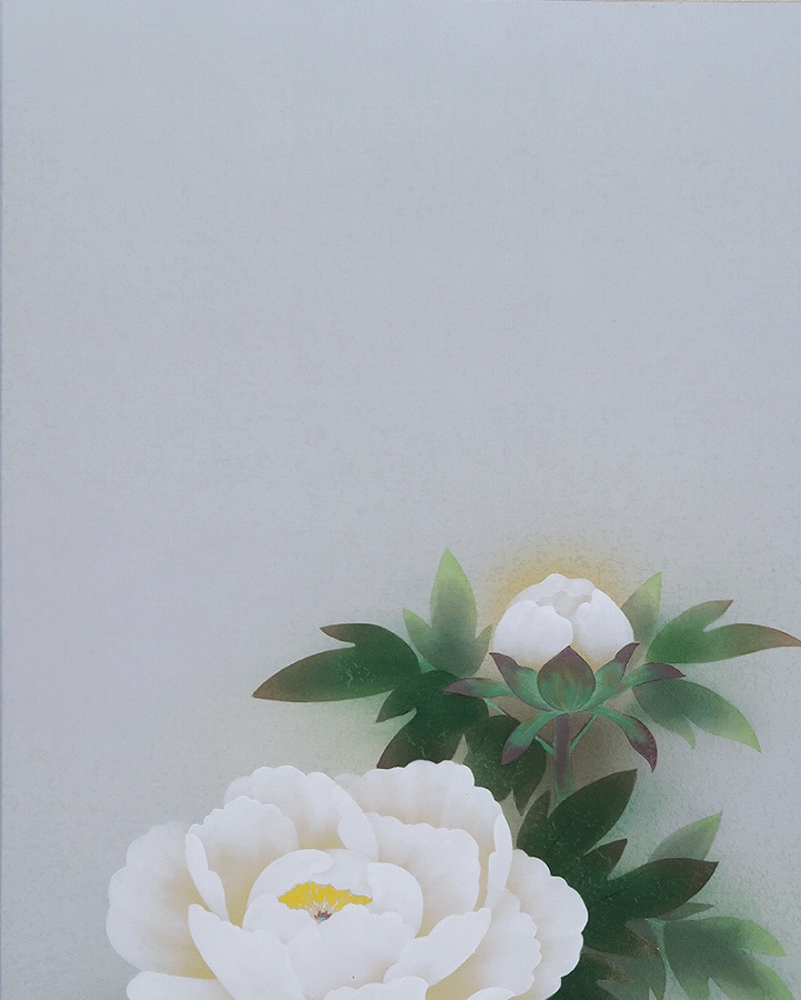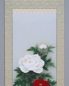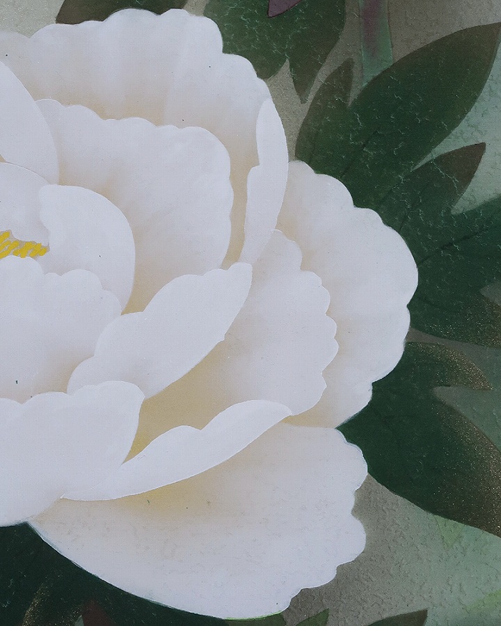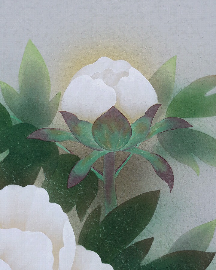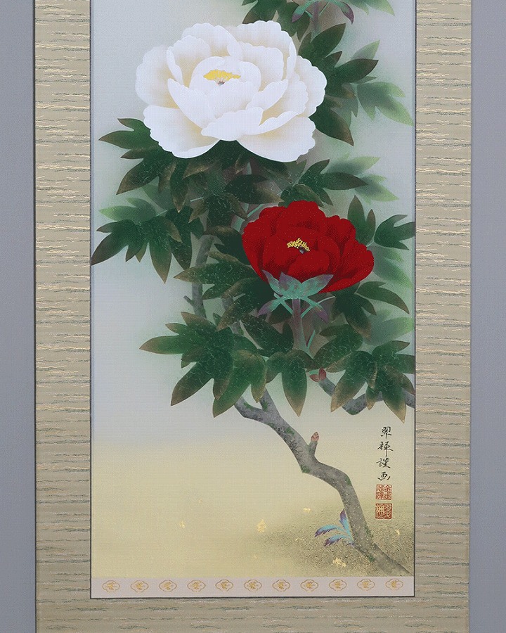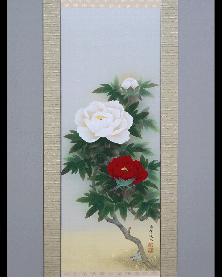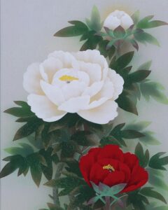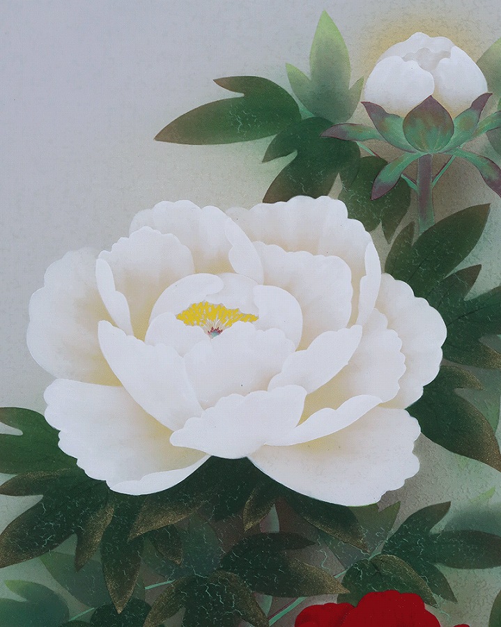 グラデーション良く美しい作品です。紅白牡丹を縁起よく彩りお楽しみください。