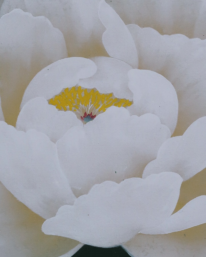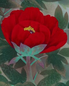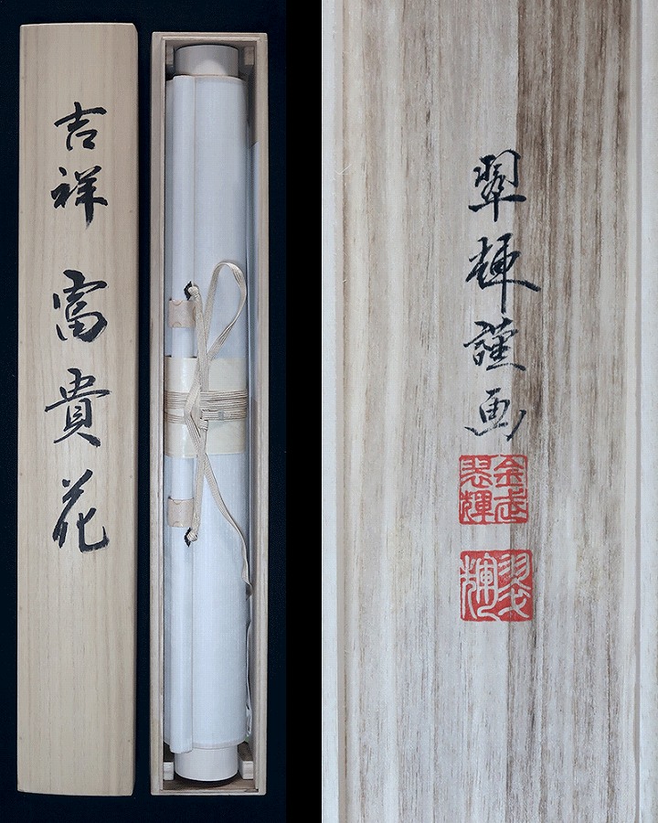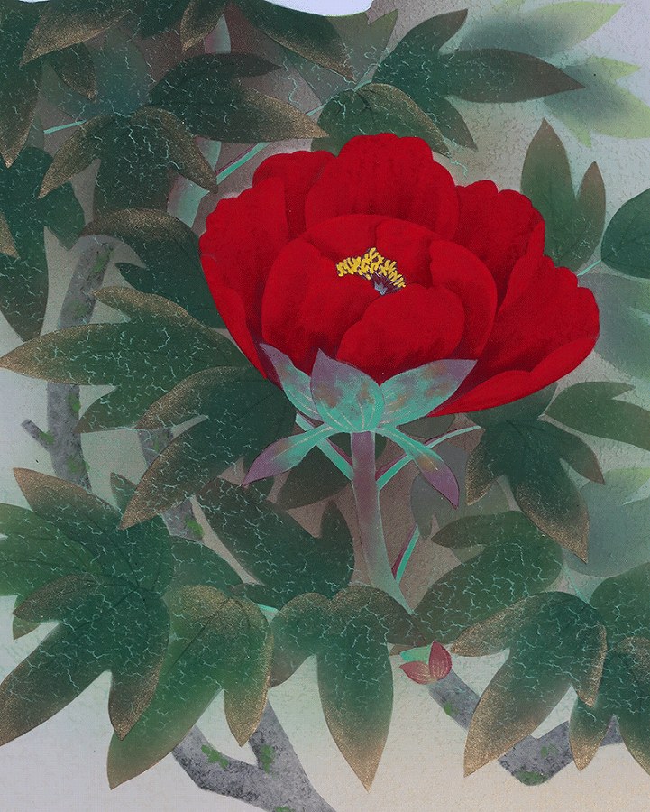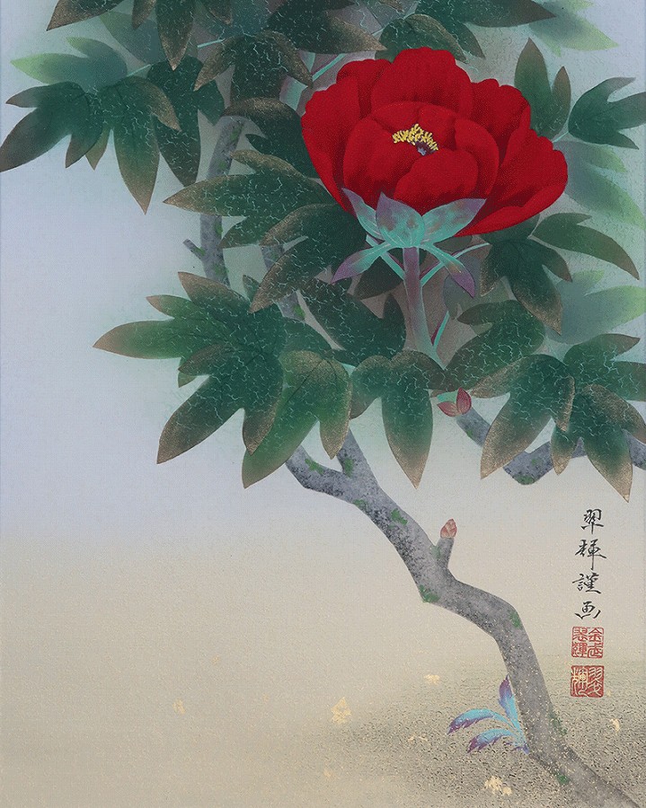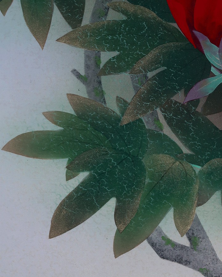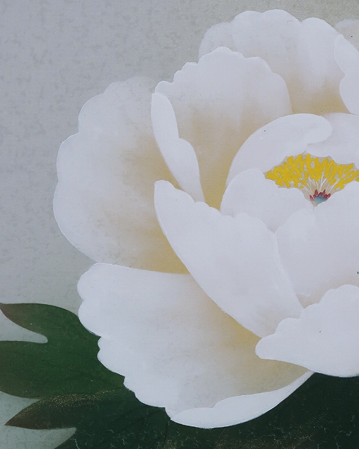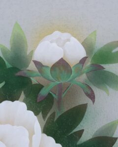 グラデーション良く美しい作品です。紅白牡丹を縁起よく彩りお楽しみください。