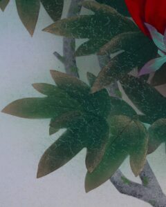 天地裏にわずかなよごれがあったため表装中廻し・風帯は当時のままで天地替えをおこなっています。