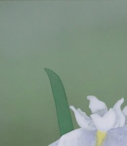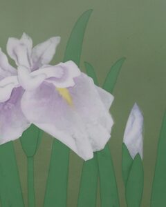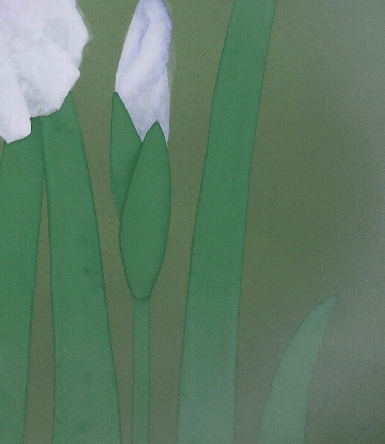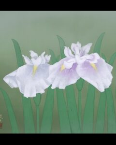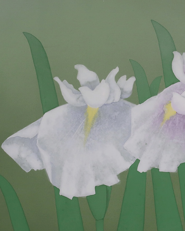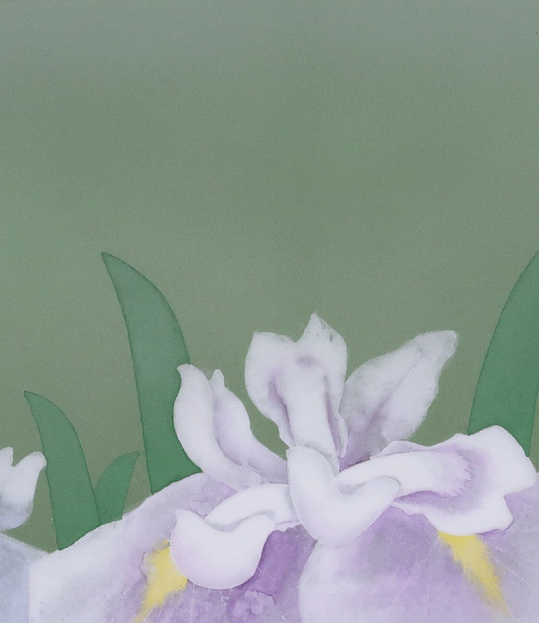 緑に浮かぶ菖蒲の花弁が美しい作品です。お楽しみ下さい。
