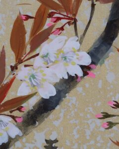 金地の輝きと白い花弁が調和し、春の床の間を華やかに彩りいただけます。