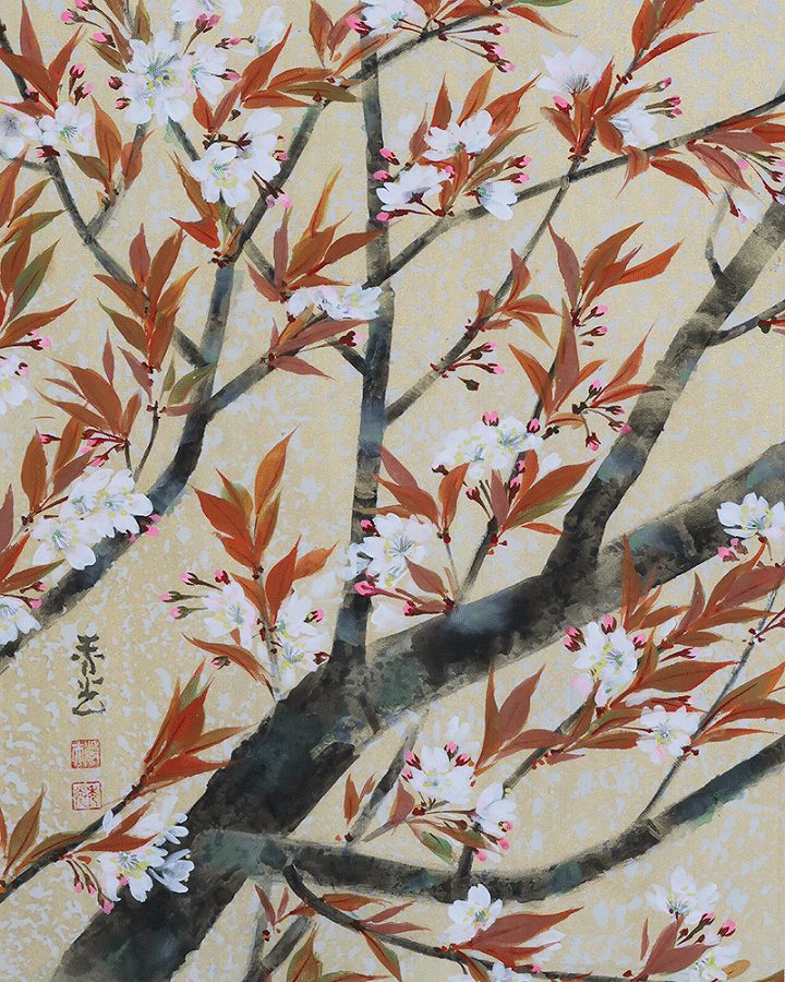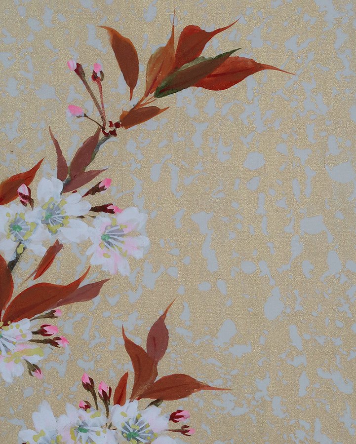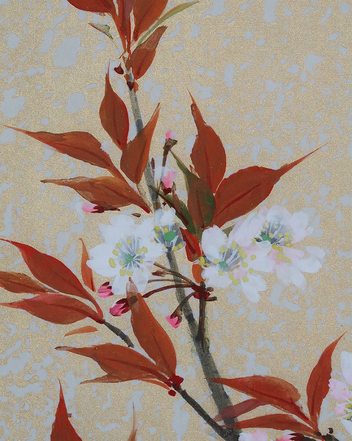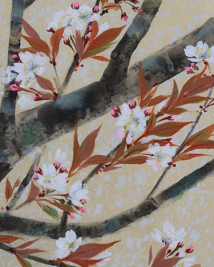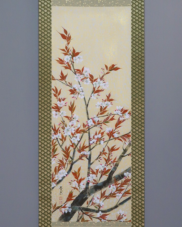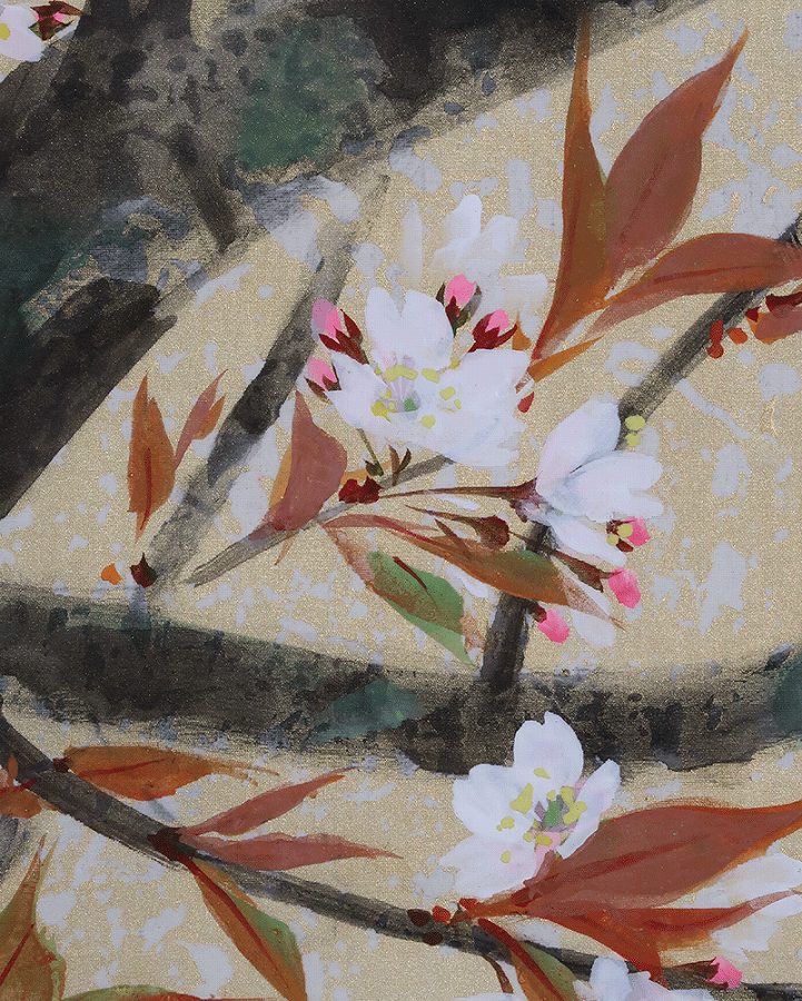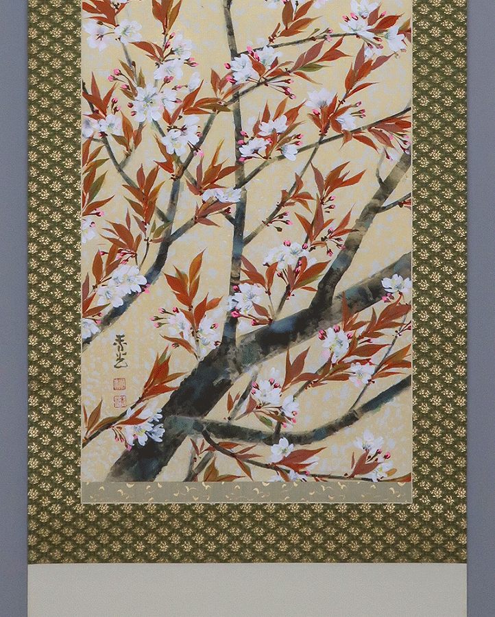 金地の輝きと白い花弁が調和し、春の床の間を華やかに彩りいただけます。