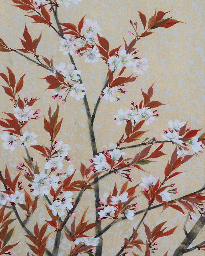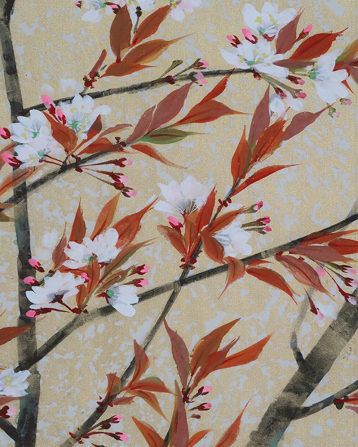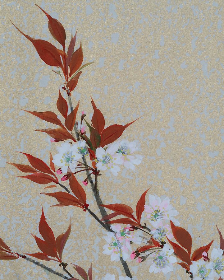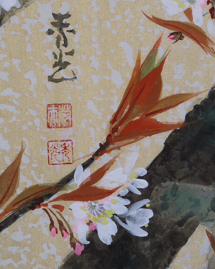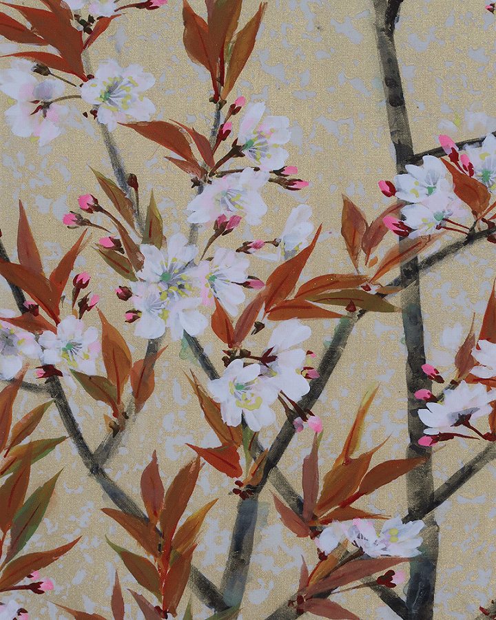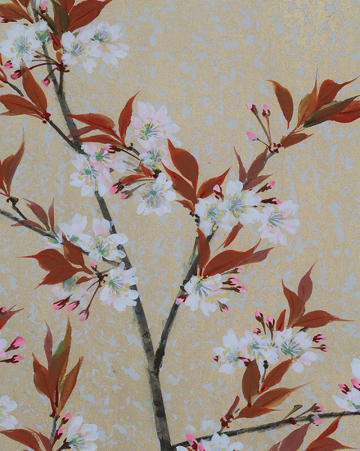 金泥を下地にひき、その上から描きあげられた作品になります。