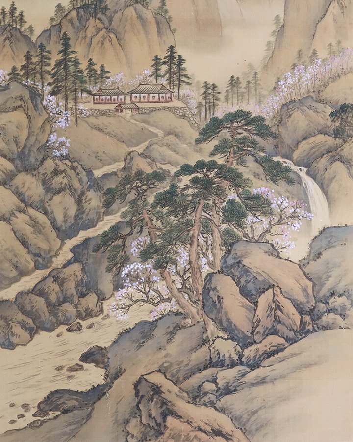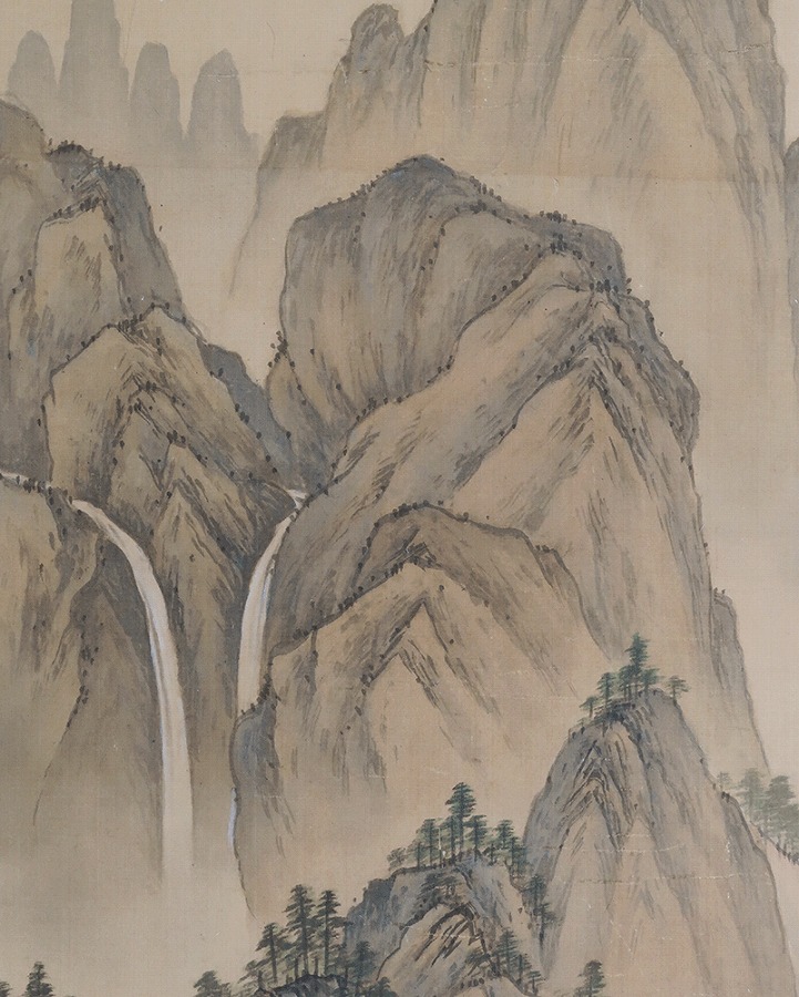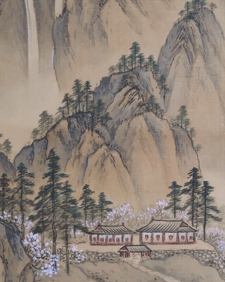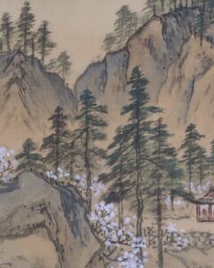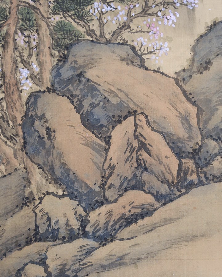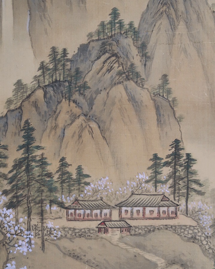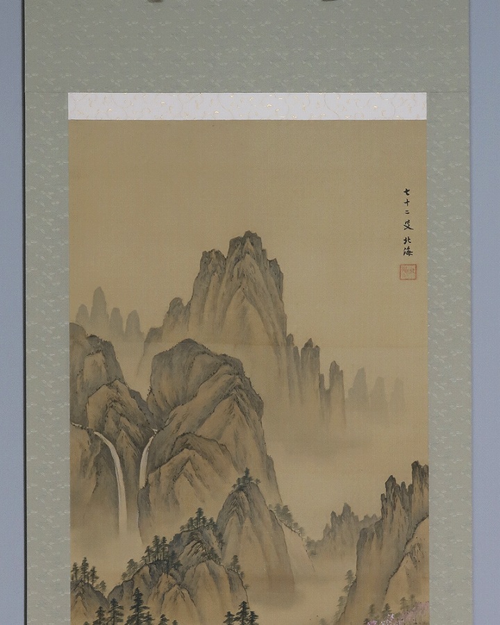 作品全体にヤケと絹本の亀裂跡がありますが、鑑賞時は気にならずお掛け頂ける状態です。