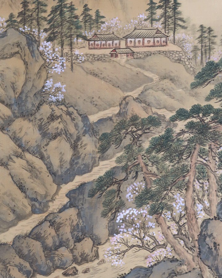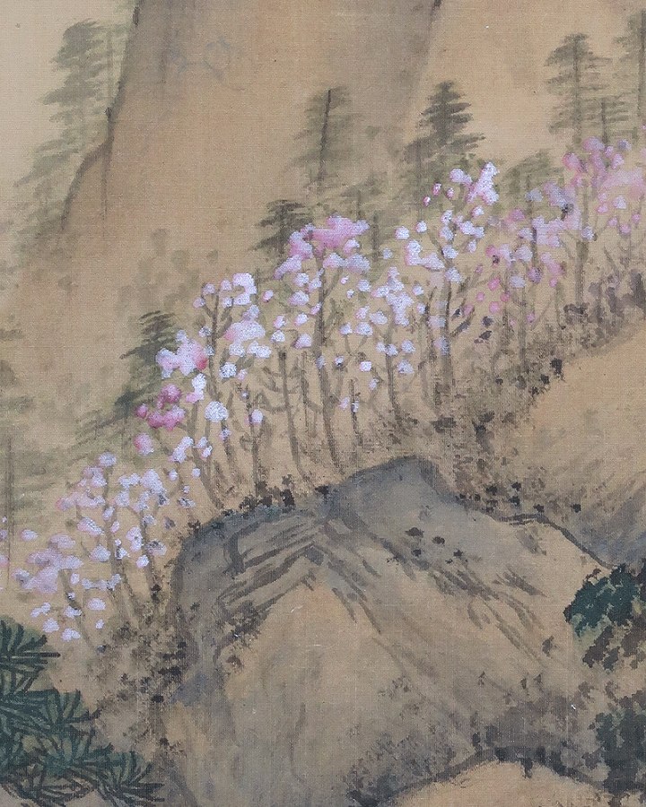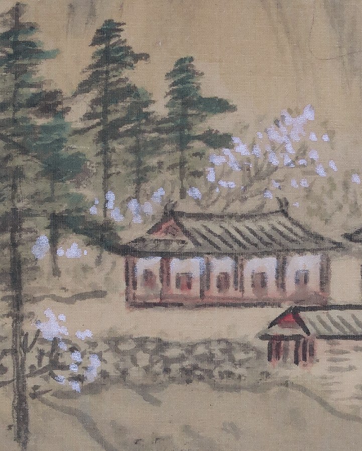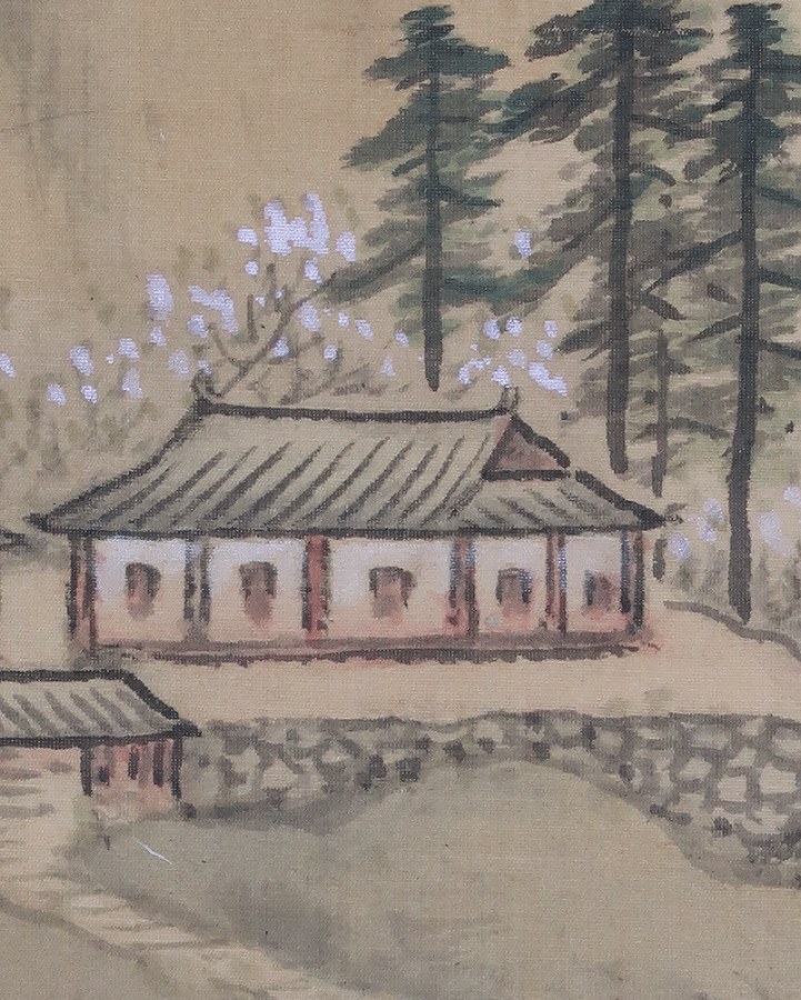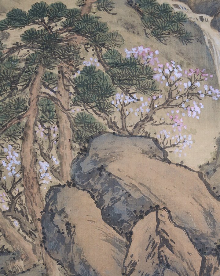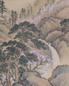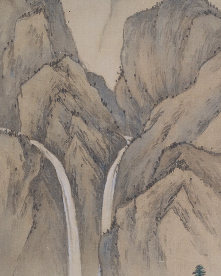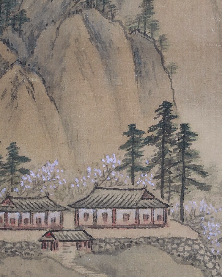 作品全体にヤケと絹本の亀裂跡がありますが、鑑賞時は気にならずお掛け頂ける状態です。
